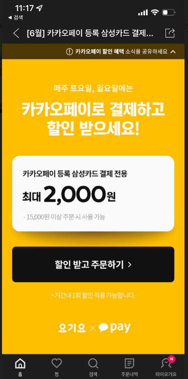 5월에 이어 매주 토요일, 일요일 카카오페이로 결제 할 경우 2천원 할인도 있다.
