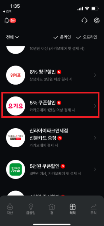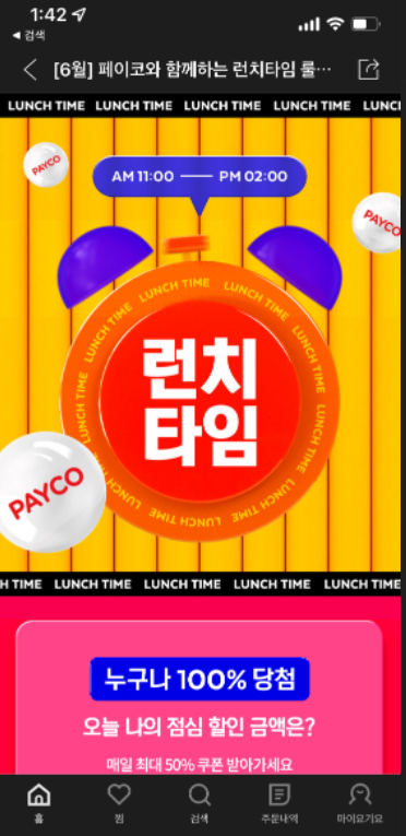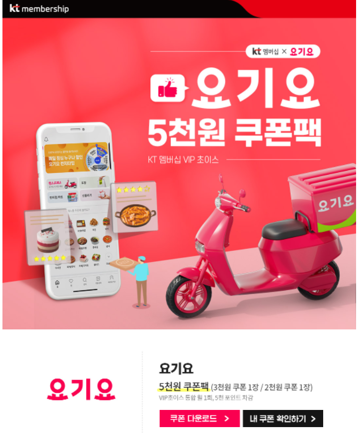 아래 들어가서 쭉 내리다 보면 요기요 쿠폰이 있다.