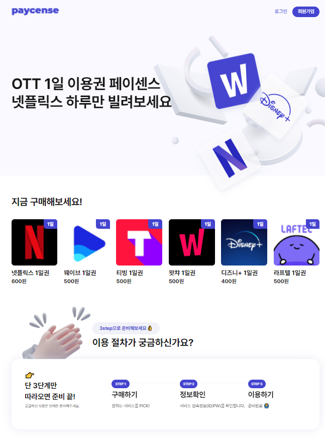 OTT 서비스를 1일 단위로 결제 해서 내가 보고 싶은것만 저렴하게 볼 수 있어서 좋을듯 하다.