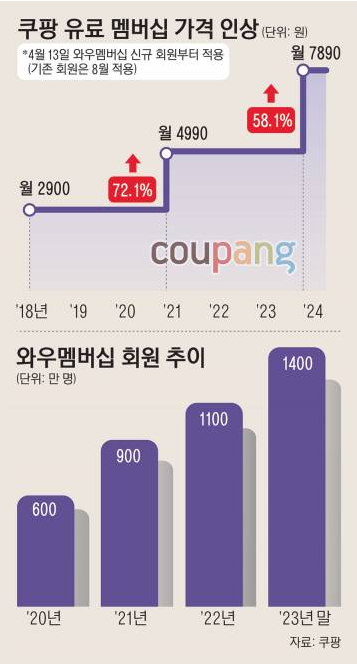 쿠팡 와우 가격인상 쿠팡 와우가 18년 2900원에 시작했고 21년 4990원으로 인상 이제 4월 13일 부터 와우맴버십 신규 회원은 7890원(기존 회원은 8월 부터 적용) 이라고 한다. 뭐 월평균 8만원 이상 절약이 된다고 쿠팡에서 이야기 를 하고 있지만 가격이 지속적으로 어마어마한 금액으로 올라가는게 부담스럽긴 하다. 쿠팡이츠가 배송비 무료 선원을 할때 살짝 치킨 게임을 하지 않을까 생각을 했는데 좀 많이 아쉽다. 그리고 솔직히 조삼모사인게 쿠팡이츠가 배송비가 무료라고 하지만 배민과 요기요 가격을 비교해보면 알겠지만 가격이 다르다. 쿠팡이츠가 살짝 기본 금액이 높다 이런걸 보면 배송비를 금액아 놓인거 아닌가 의심스럽긴 한데 이상태에서 쿠팡 와우회원 월정액비용을 7890원으로 올리는건 좀 너무 한듯 ..