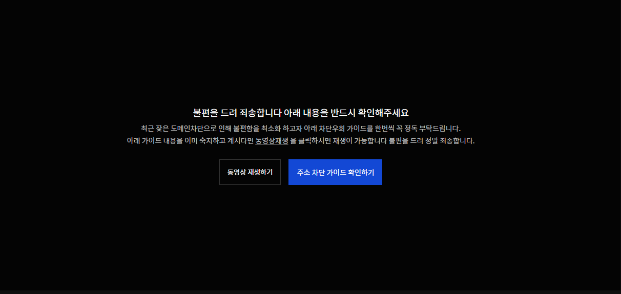 티비위키 영상 재생 불가 해결 방법[불편을 드려 죄송합니다. 아래 내용을 반드시 확인해주세요.)티비위키에 들어가면 위와 같이 화면이 뜬다.그냥 동영상 재생하기 누르면영상 재생도 안되고 아무것도 안뜬다.https://telegra.ph/tvwiki-06-09 티비위키 (TVWIKI) - 2023.06.23 접속 우회 방법에 대한 가이드 안내안녕하세요 티비위키 입니다. 2023년 06월23일 부터 접속 방법이 변경 되었습니다. 한국정부에서 수시로 차단 하는 관계로 앞으로는 사용자 여러분이 아래 우회 방법을 통해 접속 해주셔야 합니다telegra.ph여기에 나와 있는 가이드로 설정 후 다시 들어가면 정상적으로 나오는데이때까지 여러번 적었듯이 우회 방법으로 설정을 했다면 문제 없이 재생이 될것이다.만약에 안된다..