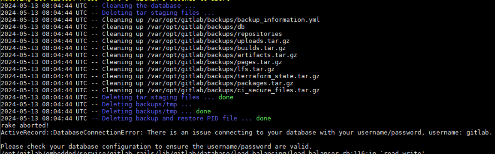 ActiveRecord::DatabaseConnectionError: There is an issue connecting to your database with your username/password, username: gitlabgitlab restore 작업을 하다가 위와 같이 에러 뜨면서 복원 에러가 발생 한다면yum remove gitlab-ce 삭제를 진행하고rm -rf /var/crash/gitlab* rm -rf /var/cache/apt/archives/gitlab* rm -rf /var/lib/apt/lists/packages.gitlab* rm -rf /var/lib/dpkg/info/gitlab* rm -rf /var/log/gitlab rm -rf /var/opt/gitlab rm..