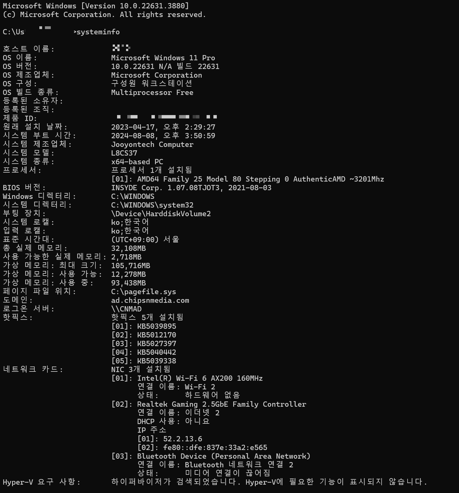 Windows OS 설치 날짜 확인하기가끔가다가 OS 언제 설치 했지? 혹은 회사에서 점검때 OS 재설치 시간이 필요할때가 있다.확인 방법은 생각보다 간단하다.윈도우키 + Q 눌러서 실행창에 cmd 입력해서 dos commnad 창에 들어가자그리고 systeminfo 라고 치고 엔터를 누르면 위와 같이 정보들이 뜬다. 위에 보면 원래 설치 날짜 이게 윈도우 처음 설치한 날짜 이다.시스템 정보에도 나와 있다.시스템 정보는 윈도우키 + pause 키를 누르면 나온다.설치 날짜 가 윈도우 최초 설치된 날짜 이다.