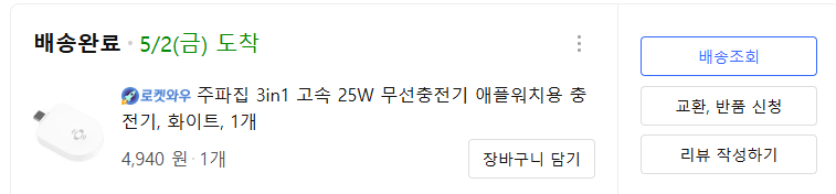애플워치용 충전기 구매 후기 with 쿠팡쿠팡에서 애플워치용 충전기를 구매 했다.당연히 알리에서 구매하는게 더 싸다.뭐 시간도 없고 가격도 나쁘지 않아서 구매 했다.쿠팡~ 로켓배송이다.주파집이 3in1 충전기 같은데 모듈 같은거라 생각 하면 될듯 하다. 참고로 애플용과 갤럭시용이 있으니 잘못사면 낭패를 격을 수 있다. 둘다 호환되는걸 만들어주면 좋으려만..크기는 생각보다 많이 작다.C 타입이다. 무선충전기에 연결하거나 PC에 C 타입이 있으면 연결해서 충전 하면 된다.외부에 나갔을때 간단하게 충전 하기 좋을듯 하다. 갤럭시 처럼 휴대폰으로 충전 할수 있으면 좋을텐데 아쉽다.