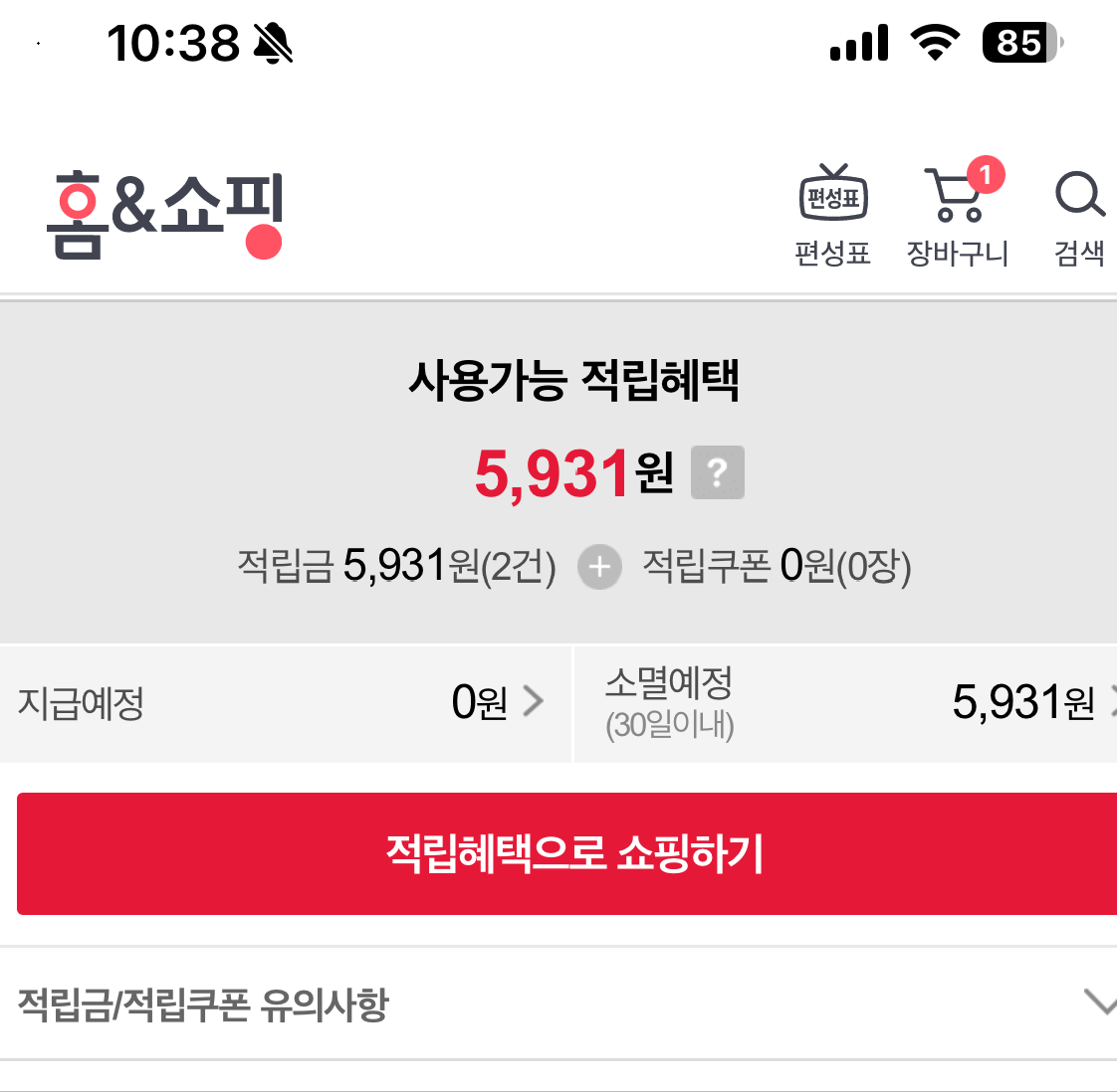 홈앤쇼핑 적립금 사용하기카톡으로 적립금이 사라진다고 알람이 떠서 들어가보니 5,931원이 오늘 소면된다고 한다. 써보자.!검색으로 적 까지만 입력하니 적립금 사용 가능한 상품 무료배송이 뜬다 이걸로 검색 해보니여러가지가 나오고이렇게 적립금 사용가능합니다. 라고 떠 있다.저렴한 순으로 정렬해서 들어가보니 적립금 사용 불가;;; 검색이 안되나? 적립금 사용 가능한 제품으로 검색 했는데방법을 찾았다.내가 구매 하고 싶은 제품을 검색 하고 옵션에 적립금사용 체크 하면 나온다. 양말.. 참 비싸다.혹시나 케이블로 검색 해봤는데 17,172원이다. ㅎㅎㅎㅎㅎ 뭔 케이블이 이렇게 비싸..다 비슷하다. 인터넷에 검색해보니 홈앤쇼핑 적립금은 그냥 버리는게 마음 편하다 라는 의견이 대다수다. 구매도 안되고 스트레스만 만땅..