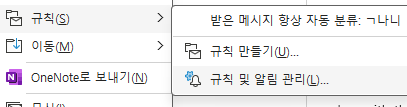 outlook 규칙을 통해 메일온 내용을 그대로 전달하는 방법 outlook 규칙을 통해 메일온 내용을 그대로 전달하는 방법 그룹메일 같은걸 이용해서 메일 받으면 한 메일로 다수의 사용자한테 메일을 전달 할 수 있지만 그런 상황이 아니라면 수동으로 메일 받은 내용을 전달해야 한다 이걸 규칙을 걸면 메일을 자동으로 특정 사용자나 그룹으로 메일을 보낼 수 있다. 아무 메일에 마우스 오른쪽 버튼을 누르면 규칙 및 알림 관리에 들어갈수 있다. 새 규칙 들어가면 규칙마법사가 생긴다. 받은 메시지에 규칙 적용으로 선택 하고 다음 내가원하는 조건을 선택 한다. 테스트로 제목에 지정 단어(cloud)가 포함된 경우 로 선택을 하고 다음 다음은 사용자 또는 공용 그룹에게 전달 옵션이 있다 이걸 선택 하고 사람을 지정을 해주자. 옵션 값을 확인 해주고 다음을 누르면 또 옵션이 나오는.. office 2024.02.06