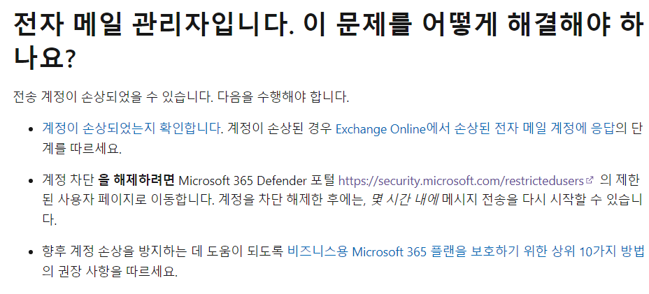 어느날 갑자기 O365 특정 사용자가 메일 수신은 정상적으로 되는데 발신이 안된다고 이야기 한다.