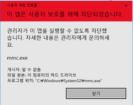이 앱은 사용자 보호를 위해 차단되었습니다. mmc.exe